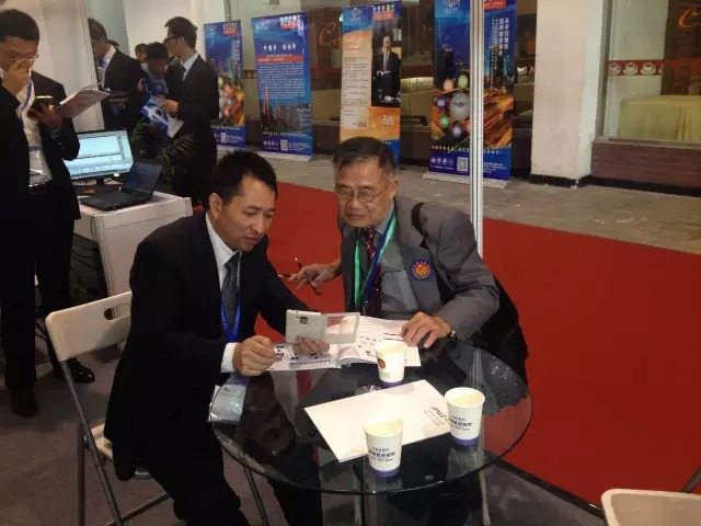 图:台湾保全协会监事翁辰修先生认真听取高总介绍